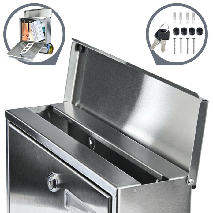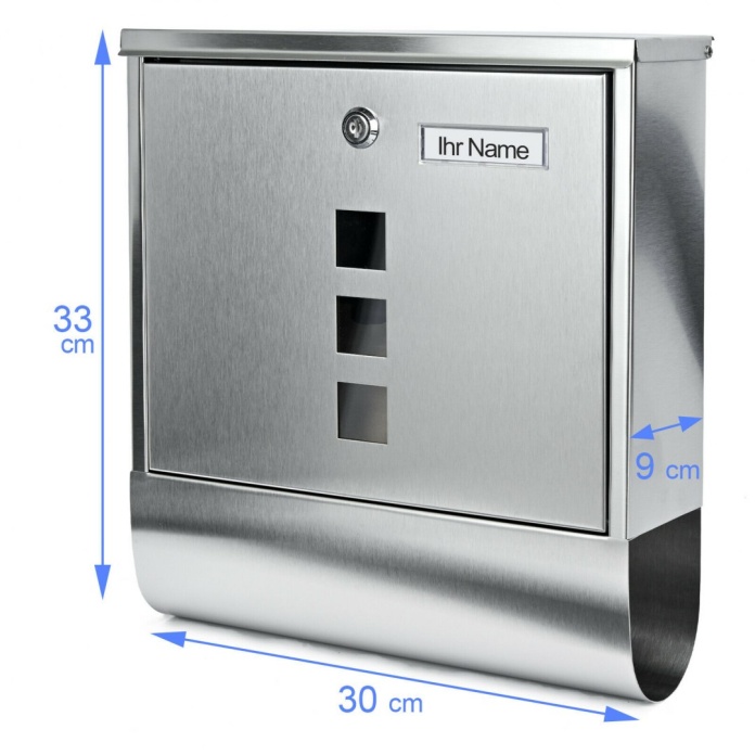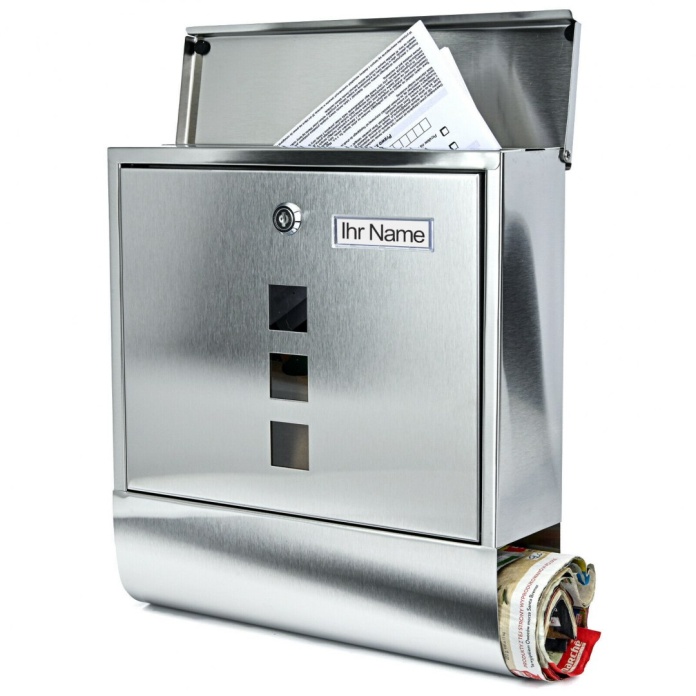 Wysokiej jakości, wykonana ze stali szlachetnej skrzynka na listy z dodatkowym pojemnikiem na gazety. Wszelka korespondencja jest bardzo dobrze zabezpieczona przed wilgocią i deszczem.