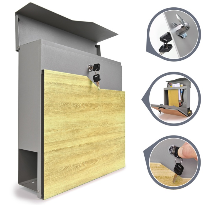 Skrzynka pocztowa na listy SN3637 Srebrny Aluminiowy + Imitacja Drewna