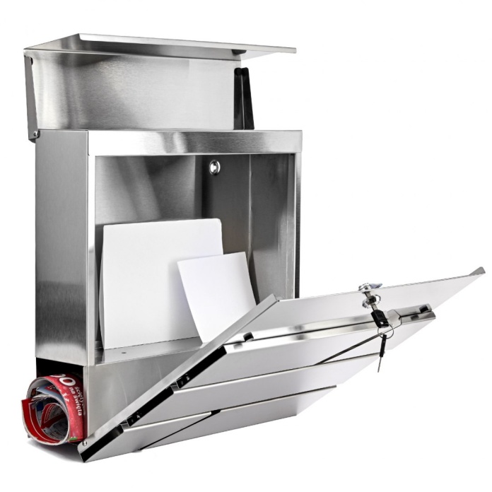 Wysokiej jakości, wykonana ze stali szlachetnej skrzynka na listy z dodatkowym pojemnikiem na gazety. Wszelka korespondencja jest bardzo dobrze zabezpieczona przed wilgocią i deszczem.