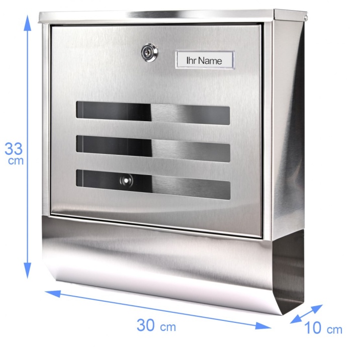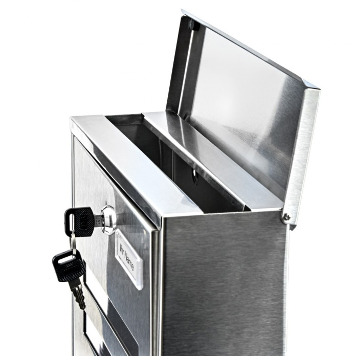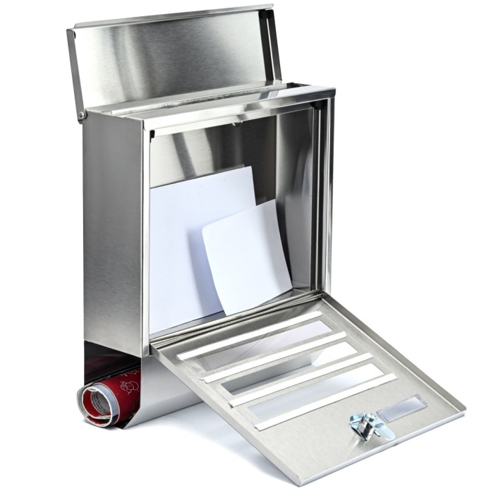 Wysokiej jakości skrzynka na listy, wykonana ze stali nierdezewnej, z dodatkowym pojemnikiem na gazety. Wszelka korespondencja jest bardzo dobrze zabezpieczona przed wilgocią i deszczem.