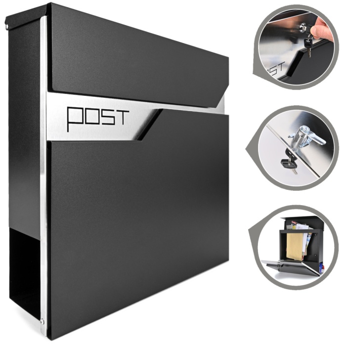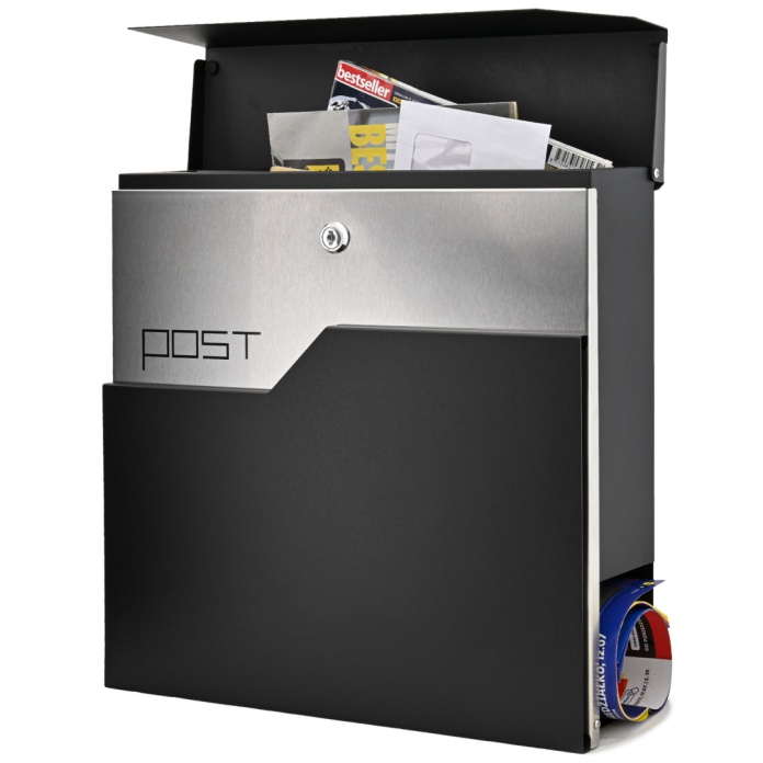 Skrzynka pocztowa na listy SN3692-2 Czarna + Stal Nierdzewna